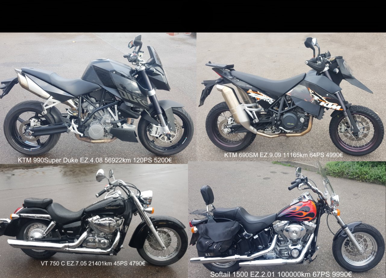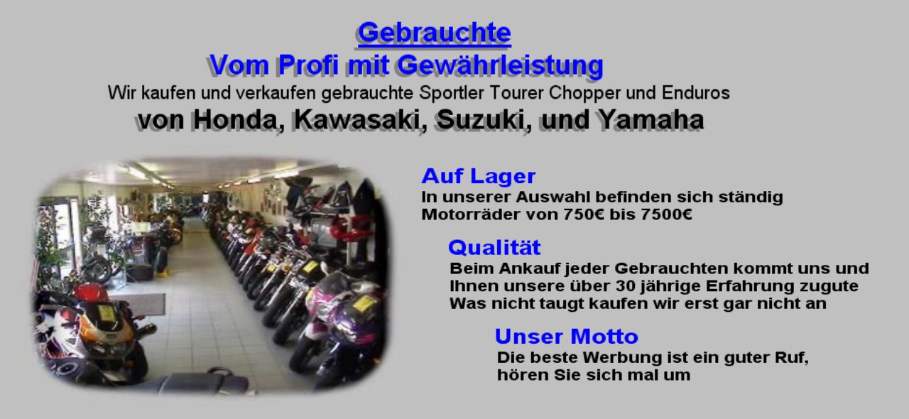 Auf Lager In unser Auswahl befinden sich ständig 50 Motorräder von 750 € bis 7500 € Qualität